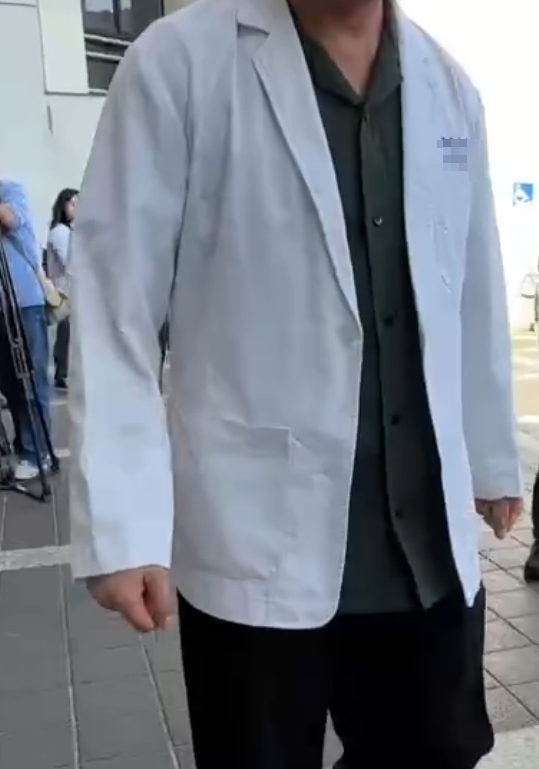 陳姓男大生父親穿著兒子衣物及白袍出庭。翻攝畫面