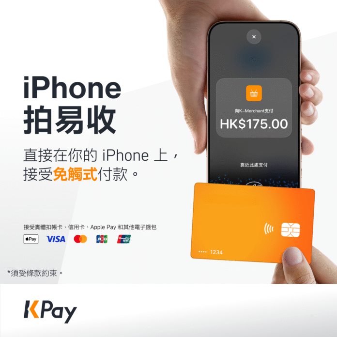 香港 – Media OutReach Newswire – 2025年12月9日 – 今日,一站式金融管理及業務營運平台 KPay宣佈,旗下香港商戶現可透過「iPhone 拍易收」 (Tap to Pay on iPhone),輕鬆安全地接受免觸式付款。「iPhone 拍易收」接受各類免觸式付款方式,包括 Apple Pay、實體扣帳卡、信用卡及其他電子錢包,只需一部 iPhone 和 KPay iOS 應用程式,無需額外硬件或終端機。