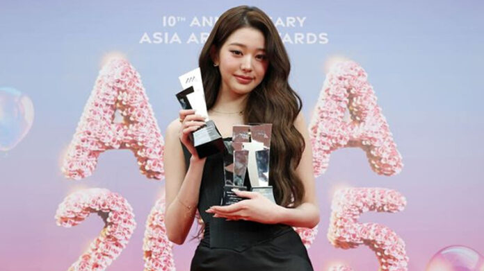 韓國年度音樂盛事 2025 Asia Artist Awards(AAA)首次移師高雄,由 IVE 張員瑛與 2PM 李俊昊共同主持。典禮進行期間,張員瑛在台下「一手一杯、一次喝兩杯」手搖飲的畫面被粉絲捕捉,引爆話題。