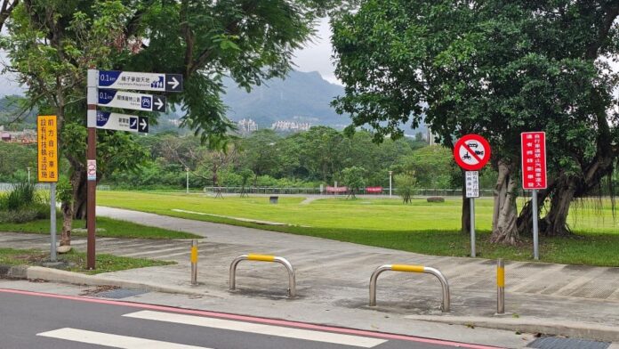 新店親情寵物公園人行步道(往碧潭堰方向)已設置車輛管制相關牌面。