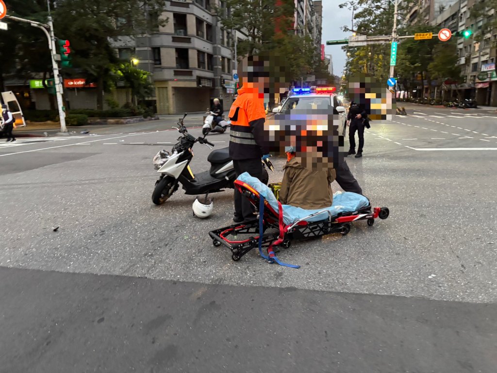 事發當天清晨近6點,天色昏暗、路上車輛稀少,譚員從住家騎機車出門準備前往松山轄區上班,行經光復南路南往北第二車道時遇綠燈直行,李婦則沿路口南側斑馬線由西往東穿越馬路。疑似雙方都沒注意到對方,「砰」一聲巨響,機車前車頭直接撞上李婦右側身體,老婦人當場被撞飛、翻滾數圈倒地,譚員也連人帶車重摔在地。