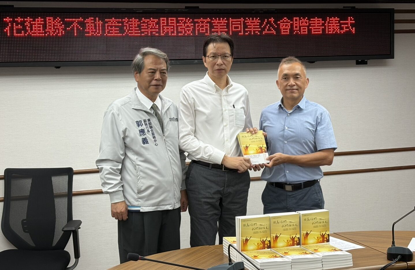 花蓮縣不動產建築開發商業同業公會捐贈250本第十九屆十大抗癌鬥士專書《因為你們,我們相信光》,期盼透過抗癌鬥士游志文帶著故事分享抗癌經歷,給更多人帶來希望與光。