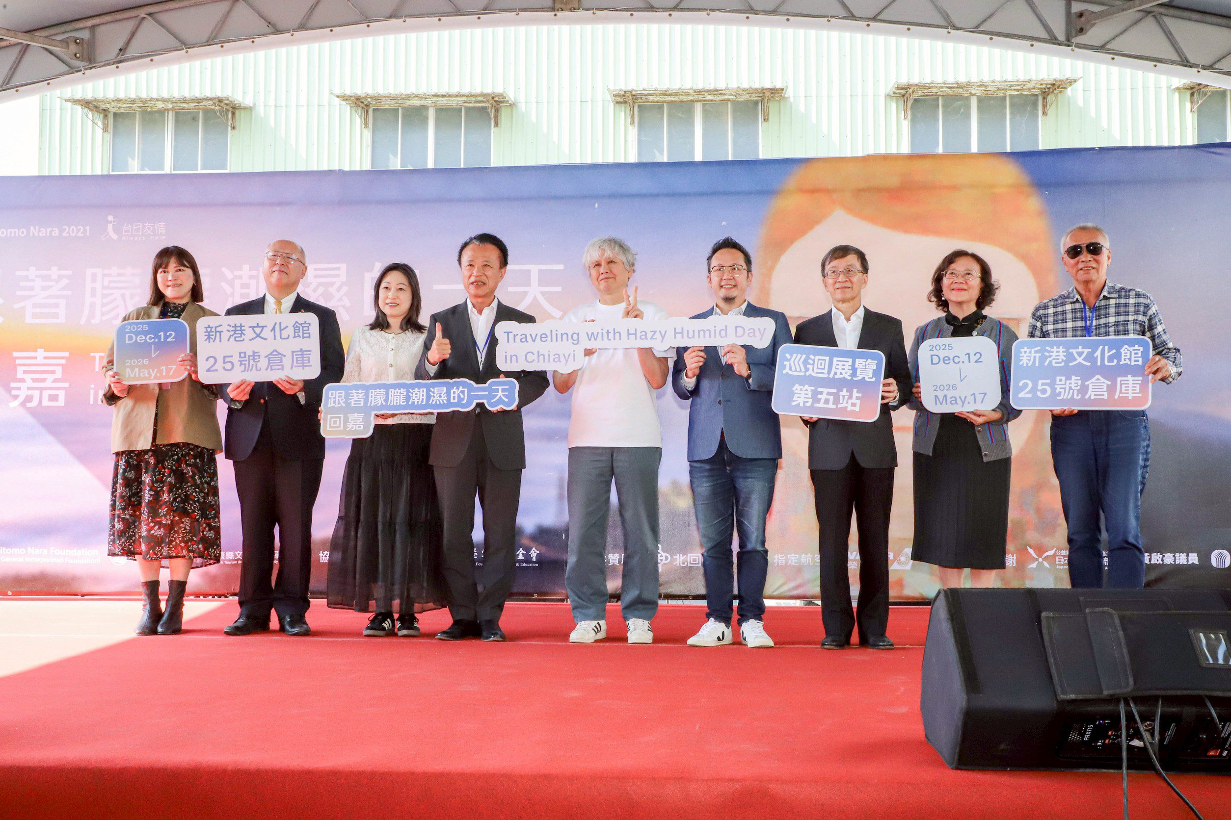 日本知名藝術家奈良美智舉辦在台10年巡展「跟著朦朧潮濕的一天去旅行」,第5站前往嘉義縣新港鄉展出,12日在新港文化館25號倉庫盛大開展。 展出亮點之一是奈良美智以1994年「凋謝的花」為基礎,在2020年重新創作「凋謝的花(2020版)」,此作品首次在台展出,嘉義縣成為首度公開亮相的地點。