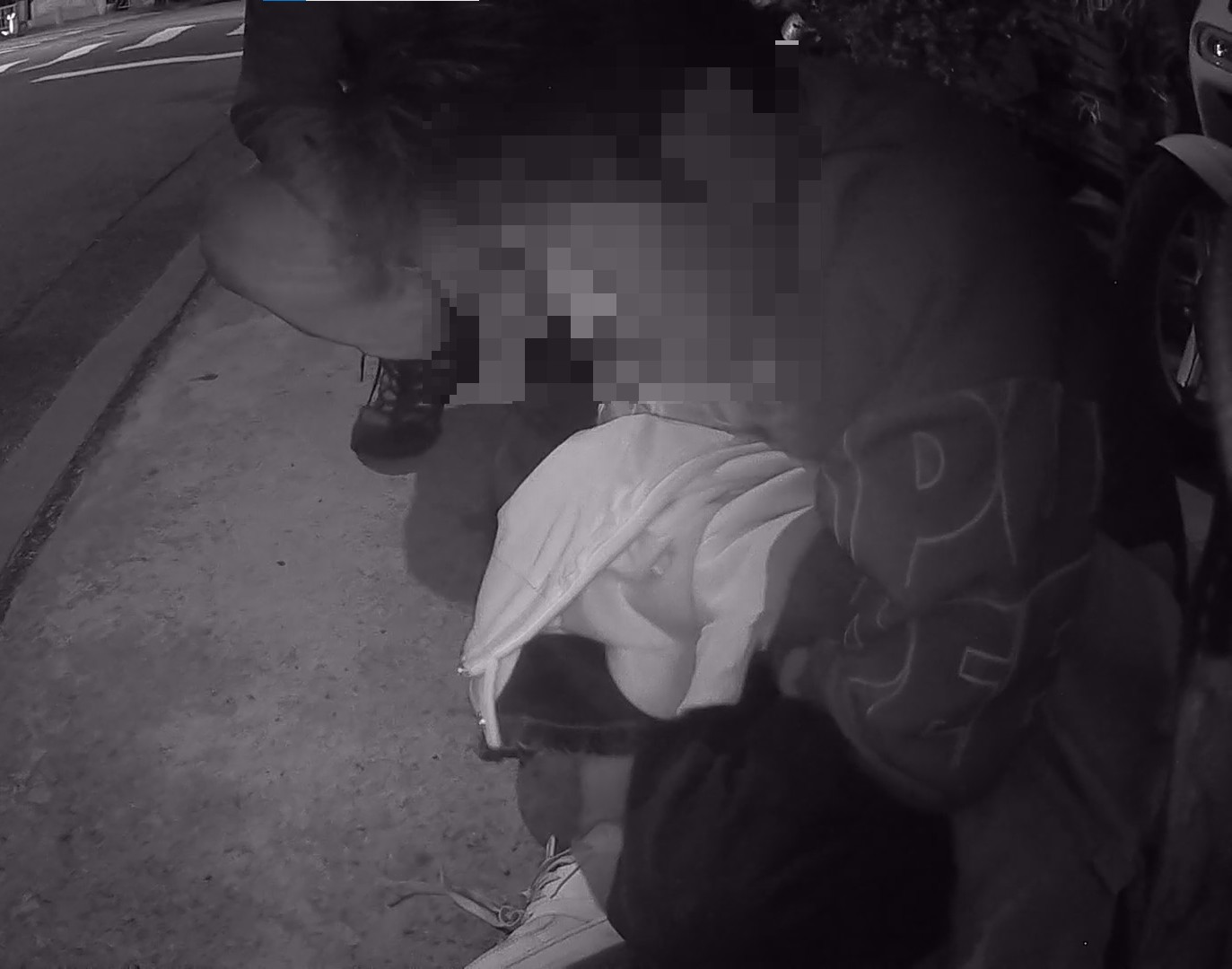 趴在路中央的醉漢被員警拖至路邊。翻攝畫面