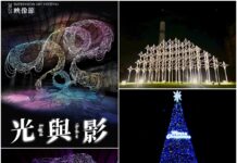 而在戶外廣場矗立12公尺高的聖誕主樹,每天下午5時至晚間10時亮燈;活動期間每週六日(12/13、14及12/20、21),戲棚下及光合屋都有聖誕市集,在市集消費還可參與交換禮物,名額有限,詳情請至中興文創園區FB查詢。