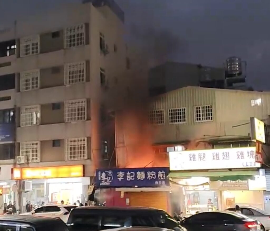 台中南屯派出所對面火警冒出火光。翻攝畫面