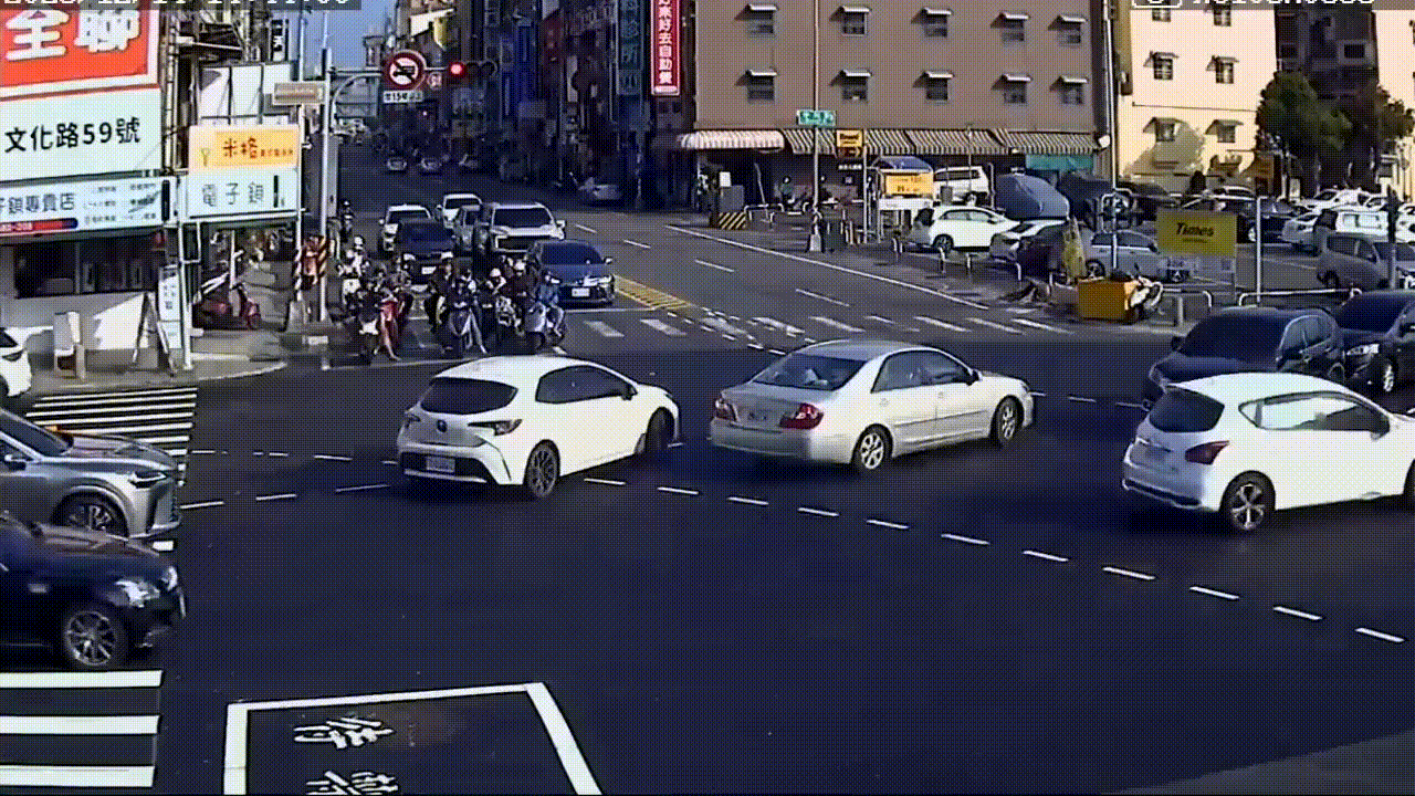 警方指出,蔡姓女子(25歲)駕駛自小客車沿澄清路北往南行駛,左轉中山西路時,與沿澄清路南往北直行、由洪姓男子(33歲)所駕駛的自小客車發生碰撞,事故衝擊力道又波及機車停等區內,由吳女(33歲)、蔡女(57歲)、吳女(42歲)、王女(64歲)等人所騎乘的重機車。