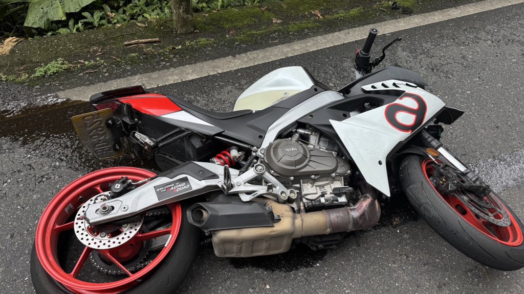 【Lai傳媒、記者爆料網/莫沛宇/新北報導】新北市坪林區北宜公路昨(14)日上午11時許發生1起重機自摔事故。22歲王姓男子騎乘新車要價新台幣30萬元起的APRILIA RS457大型重機車,由新店往宜蘭方向行駛,行經北宜公路32.4公里處過彎時,疑似因打滑失控自摔倒地,造成右手骨折。警消獲報到場後,協助將王男送醫救治,所幸他意識清楚,無生命危險。