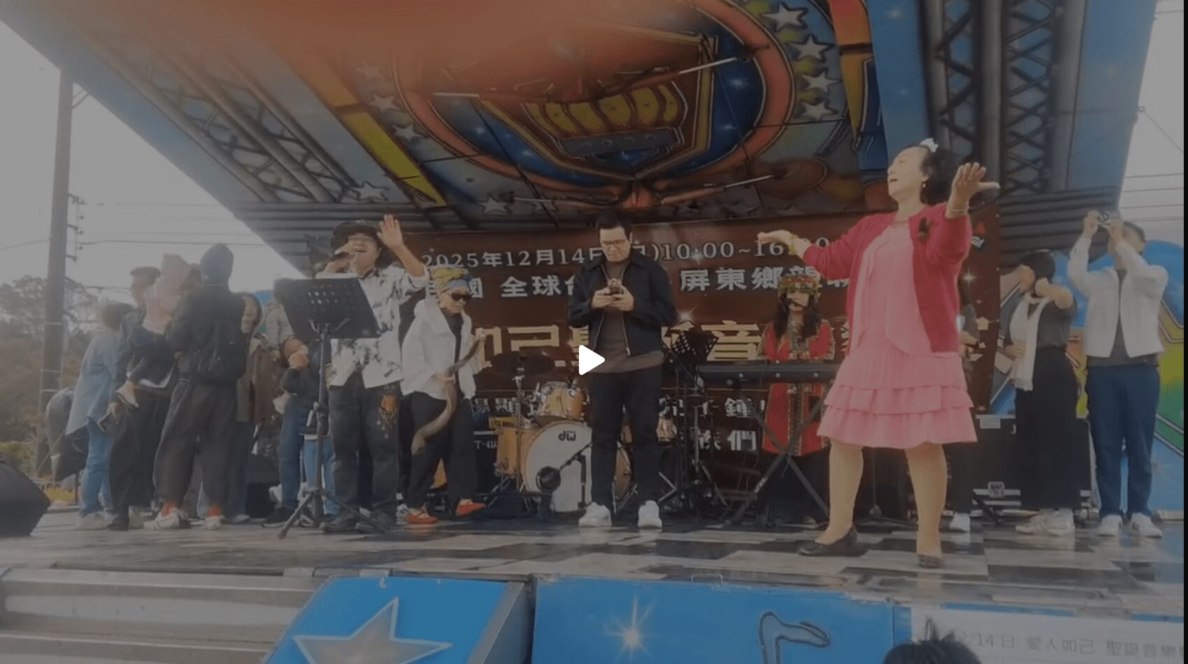 【記者戴英薇/滿州報導】 為迎接即將到來的聖誕佳節,中華民國全球屏東鄉親聯誼會於12月14日中午在滿州鄉盛大舉辦「2025年愛人如己聖誕音樂饗宴」。活動當天雖遇天候不穩、細雨紛飛,卻絲毫未減鄉親們的熱情與感動,現場席開300桌、吸引超過3000人到場共襄盛舉,在「天降甘露」中完成一場難忘且充滿祝福的聖誕盛宴。