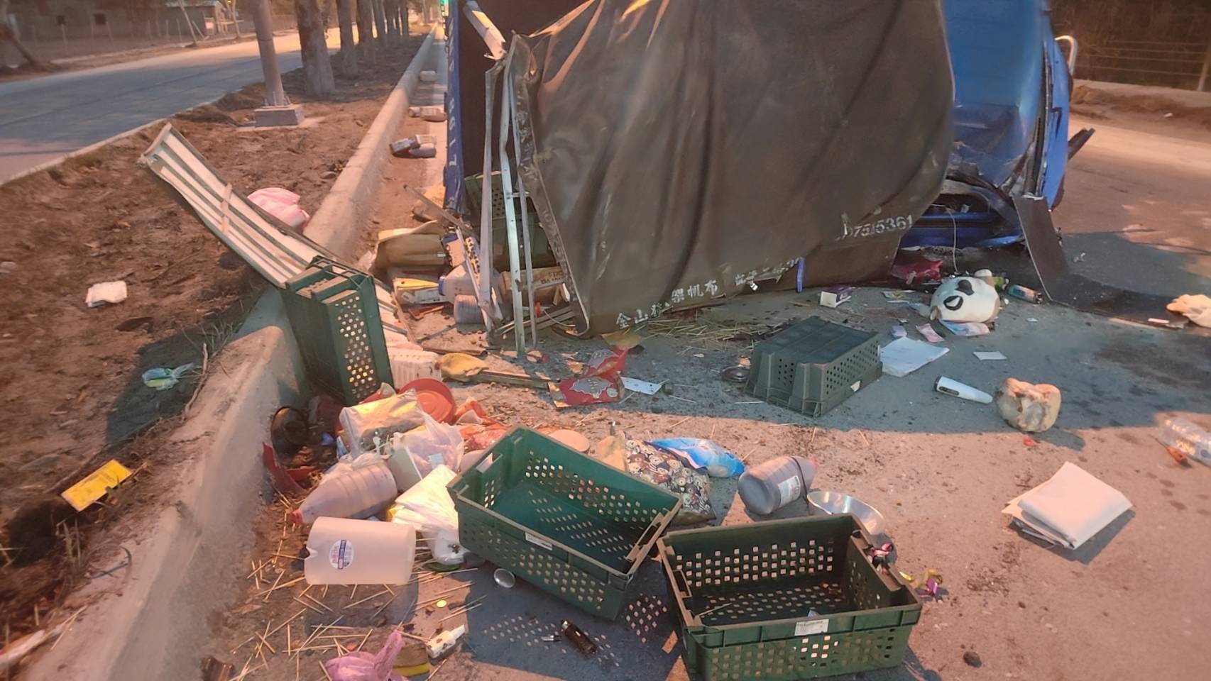貨車載運物品散落路面。翻攝畫面