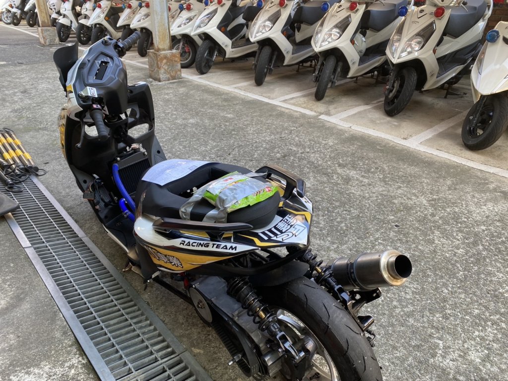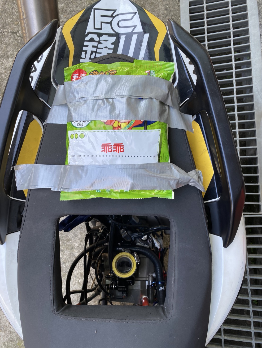 警方進一步查證發現,這輛正在試車的改裝機車為1輛未經核准領用牌證的拼裝車。更令人印象深刻的是,該拼裝車上還綁著1包綠色「乖乖」,似乎是祈求改車後的設備能夠穩定運作,但這包「乖乖」並未能保庇違規行為不被告發。