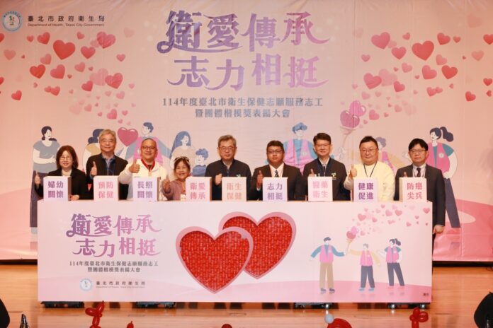 臺北市政府衛生局於12月16日假臺北市政府市政大樓2樓親子劇場,舉辦「114年度臺北市衛生保健志願服務志工暨團體楷模獎表揚大會」。今年以「衛愛傳承 志力相挺」為主題,肯定志工長期投入衛生保健服務工作,更感謝資深志工的經驗分享與智慧傳承,讓更多市民加入志願服務行列,貢獻一己之力。臺北市李泰興秘書長代表臺北市政府向所有志工致上誠摯感謝,並鼓勵市民加入志工行列,同心協力打造溫馨活力城市。
