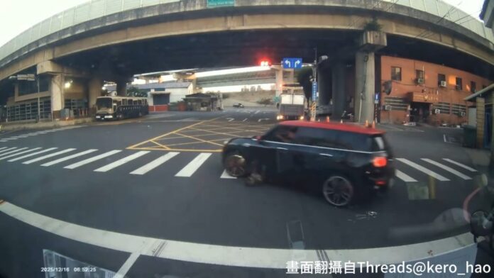 【Lai傳媒、記者爆料網/莫沛宇/新北報導】新北市三重區新北大道二段、光復路二段口,昨(16)日清晨6時許發生1起令人髮指的虐待動物事件。1名駕駛黑色MINI COOPER的男子,先是公然違規紅燈迴轉,無視車前有隻黑狗直接將其撞翻,甚至前輪輾過後,車輛有明顯彈跳後也裝作無事發生一般,持續加速連帶後輪再次輾過黑狗。小狗被捲入車底翻滾受傷,起身後一跛一跛逃離。目擊民眾雖在後方瘋狂鳴按喇叭示警,但該駕駛竟加速逃離現場,殘忍行徑被PO上網後引發公憤。