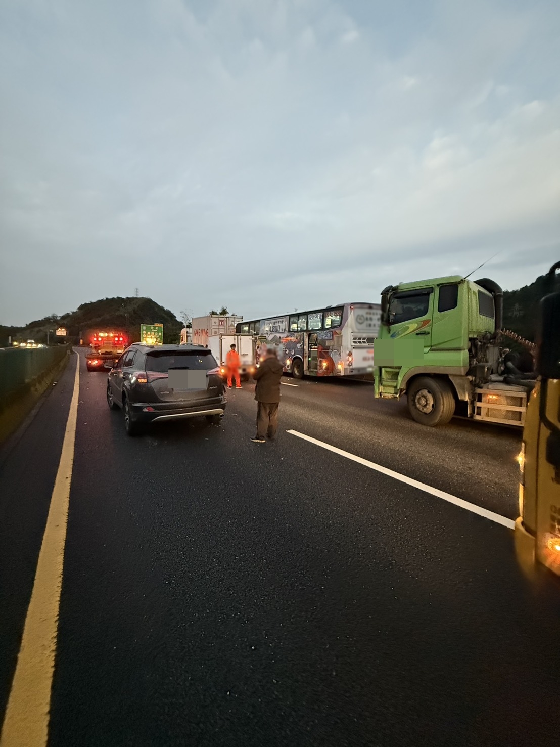 國道1號五堵路段車禍造成國光客運 6名乘客受傷。翻攝畫面