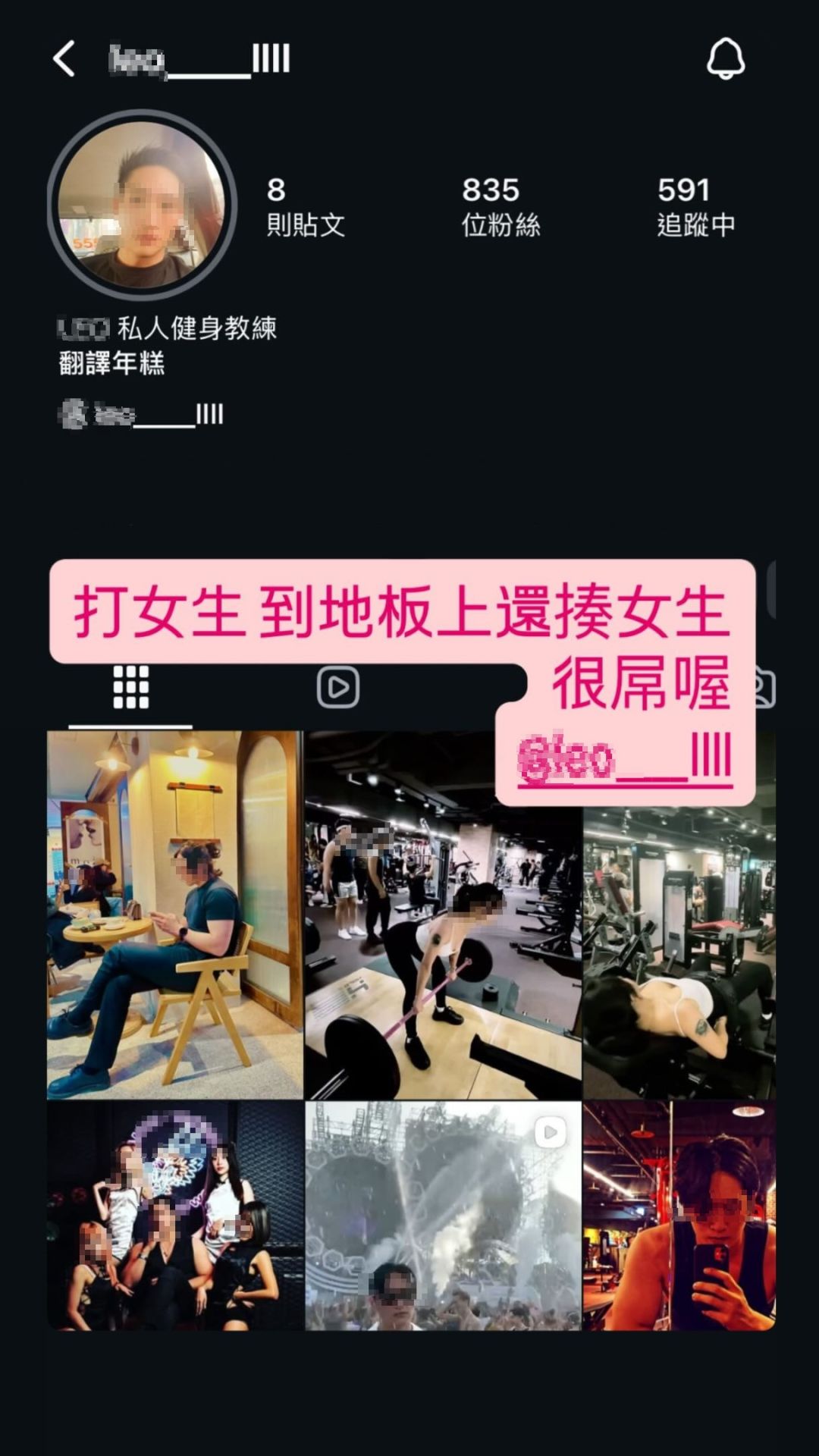 網友PO出健身教練的相關畫面。翻攝畫面