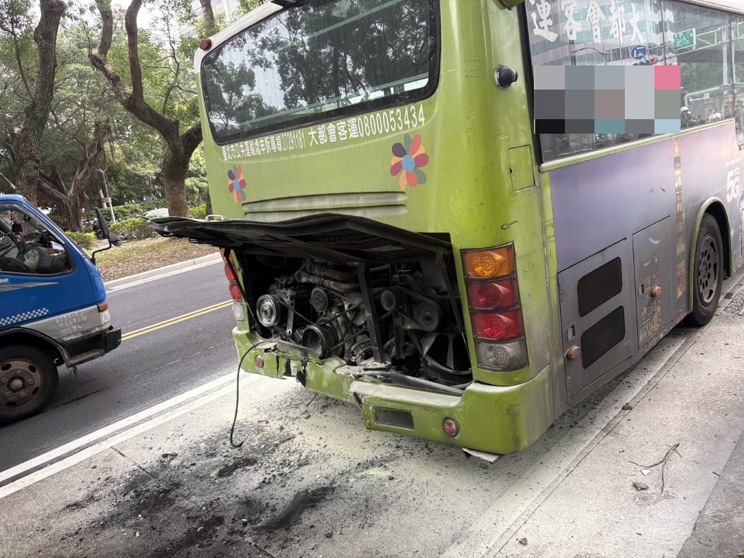 遭追撞的公車車尾毀損。翻攝畫面