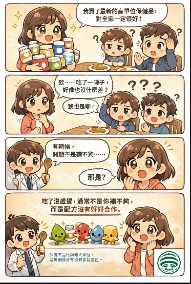 補充品越買越高單位,瓶身標示越來越漂亮,家人也確實天天在吃,卻只換來一句——「好像也沒什麼感覺」。