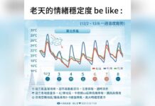 氣象署說明,12/23週二東北季風減弱,北臺灣撥雲見日,北海岸,東半部、大臺北山區降雨趨於零星,各地舒適溫暖,大臺北平地及桃園以南天氣為晴到多雲,各地早晚低溫仍16~19度左右,日夜溫差較大。