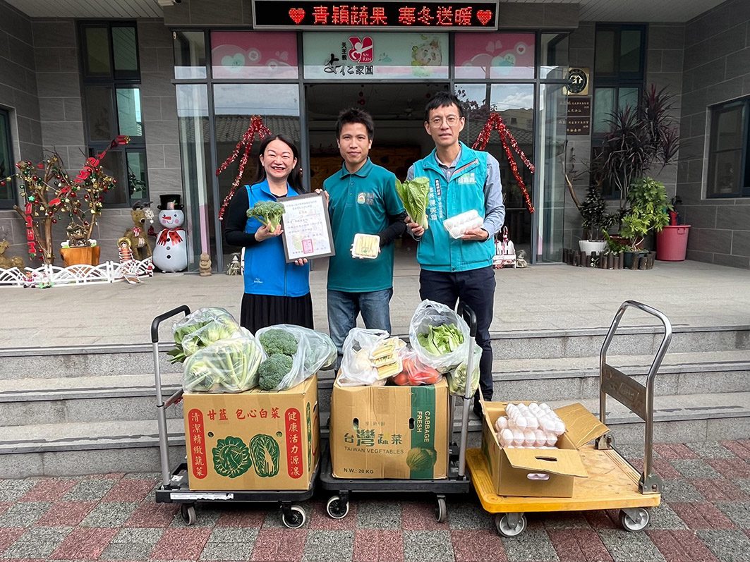 嘉義縣政府勞工暨青年發展處輔導青創團隊「青穎蔬果」為回饋社會,在平安夜前夕,捐贈約330斤蔬菜給安仁家園及聖心教養院,滿足一週餐食需要,為弱勢團體帶來愛心與祝福。