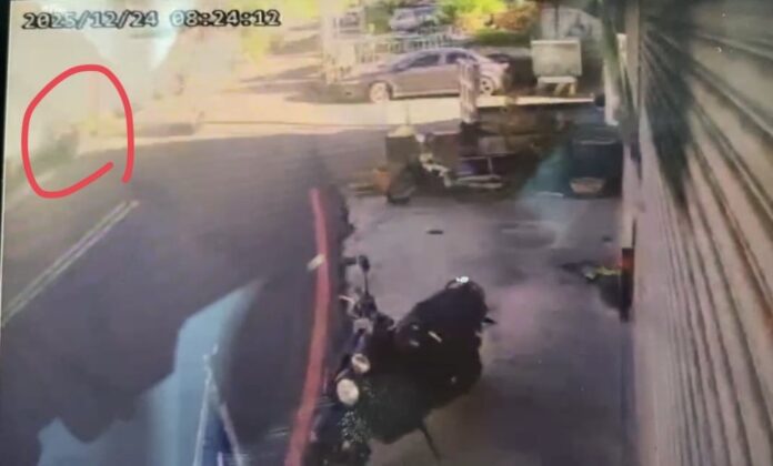 監視器畫面拍下案發時段周邊街景,警方擴大調閱影像比對,作為追查犯嫌行蹤的重要依據。(翻攝畫面)
