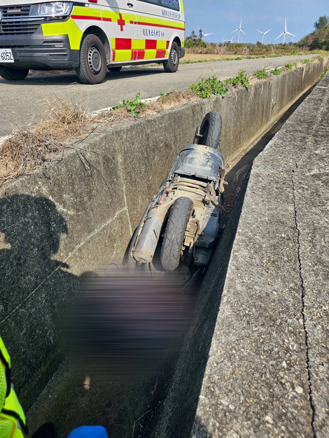 【Lai傳媒、記者爆料網/周庭慶/苗栗報導】前(24)日中午11時許,苗栗縣後龍鎮灣寶里海口產業道路發生機車騎士自摔死亡事故!87歲張姓老翁騎機車沿灣寶里海口65號產業道路由北往南直行,不明原因自摔跌落路旁水溝。家屬因久候老翁未返家,外出沿途尋找,才發現老翁倒臥於水溝內,隨即通報警消人員到場。惟張姓老翁頭部受傷出血,現場已無呼吸心跳,後續經家屬同意放棄急救。