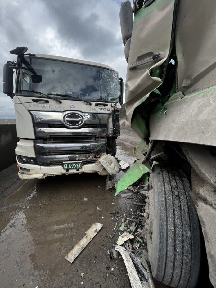 新北市八里區台北港內今(27)日中午12時許傳出砂石車對撞事故。