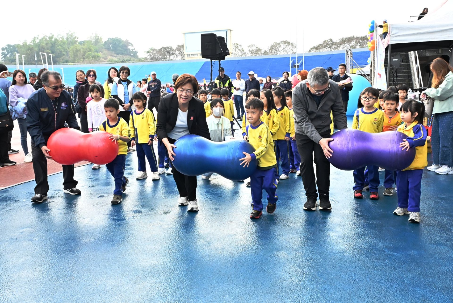 王惠美感謝承辦單位大成國小張鴻章校長帶領的團隊,為大家規劃這麼棒的活動,更要感謝所有家長對孩子成長與學習的重視,今年幼兒家庭嘉年華的主題是「EQ好情緒,親子同樂趣」,針對3C產品對孩子情緒的影響,期望透過SEL(社會情緒學習)融入24個闖關活動與氣墊遊戲,培養孩子的自信、表達、合作、創作與韌性這5種力量,讓孩子在玩樂中學習,家長也能看見孩子的成長,只要完成6關即可換取小禮物。