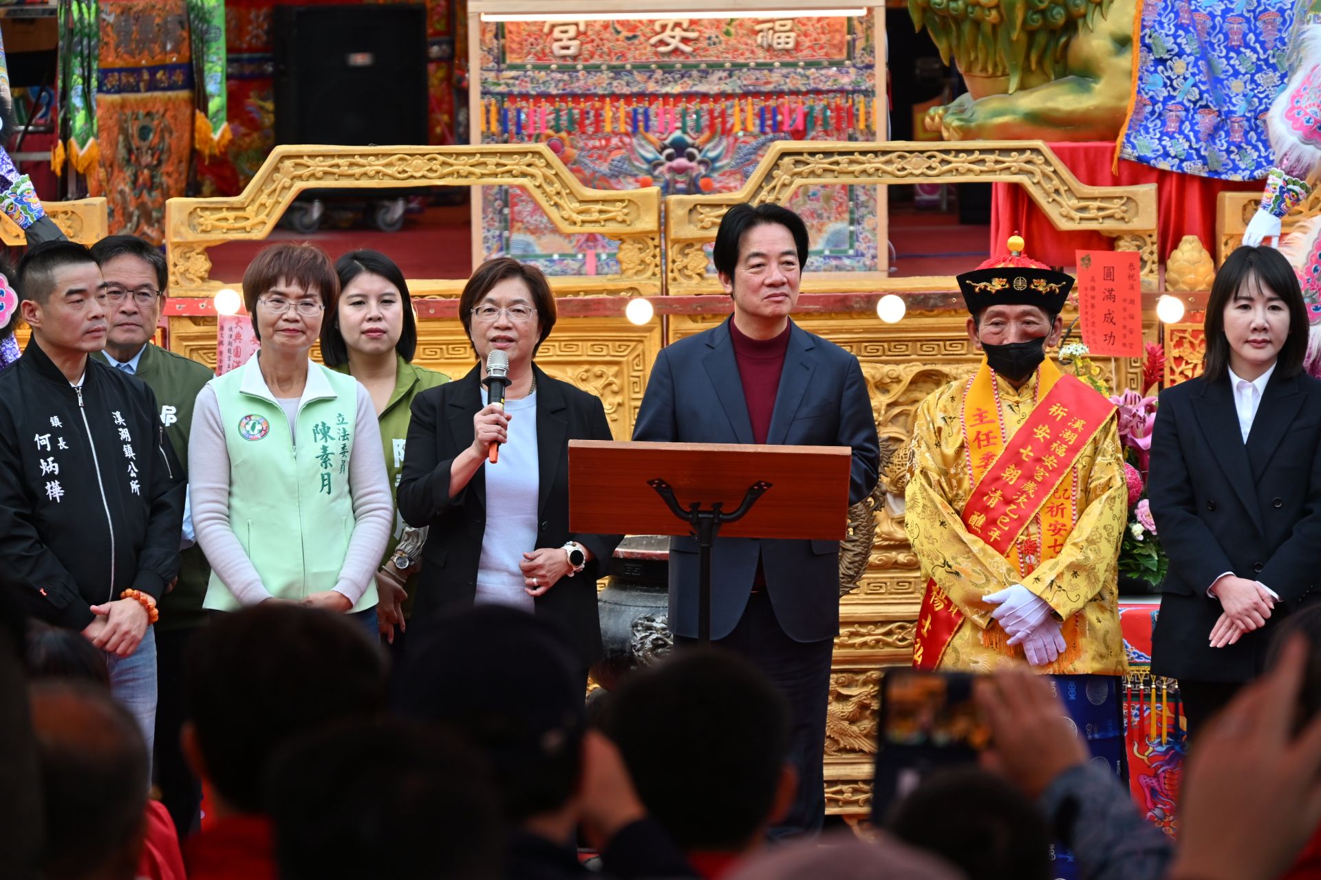 湕湖福安宮建醮大典,引人矚目的是除賴清德請大家支持民進黨正式提名的陳素月,賴情德也特別招呼國民黨立委謝衣鳳,一向不願正式表態的謝衣鳳則說「我願意來挑戰成為國民黨2026彰化縣長候選人」,來共同改造彰化,讓彰化持續進化。