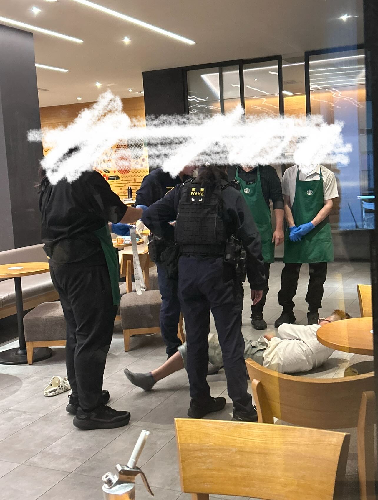 網友在Threads發文指出,在星巴克看到一名男子怪怪的抱著娃娃自言自語,後來店員去關心他就直接給店員一拳,就是後續了但店員超敬業,壓制這個不知道哪國人。該段影片中,男子出拳打星巴克員工,隨後拿椅子攻擊,員工也立即拿椅子起來對峙。