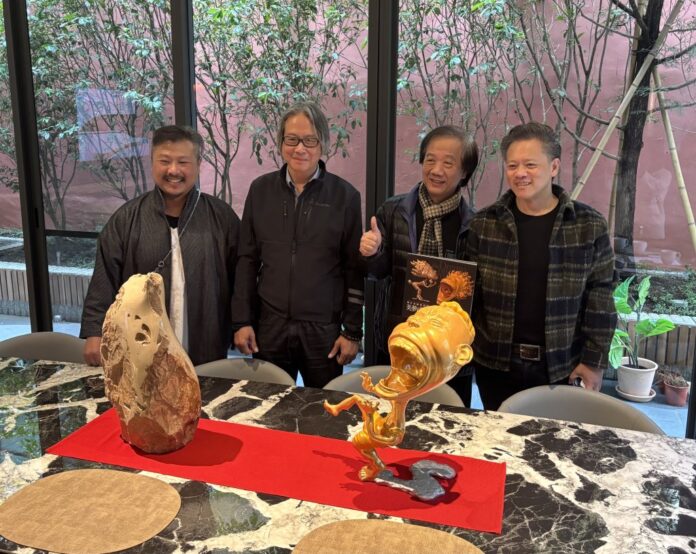 尉寶建設 陳英哲總經理(左三)與三位參展藝術家合影留念,(左起)吳極、張家銘、陳定鴻,共同見證「尉寶建設藝術季」於大墩主人正式展開,展現建築與藝術跨界融合的美學成果。