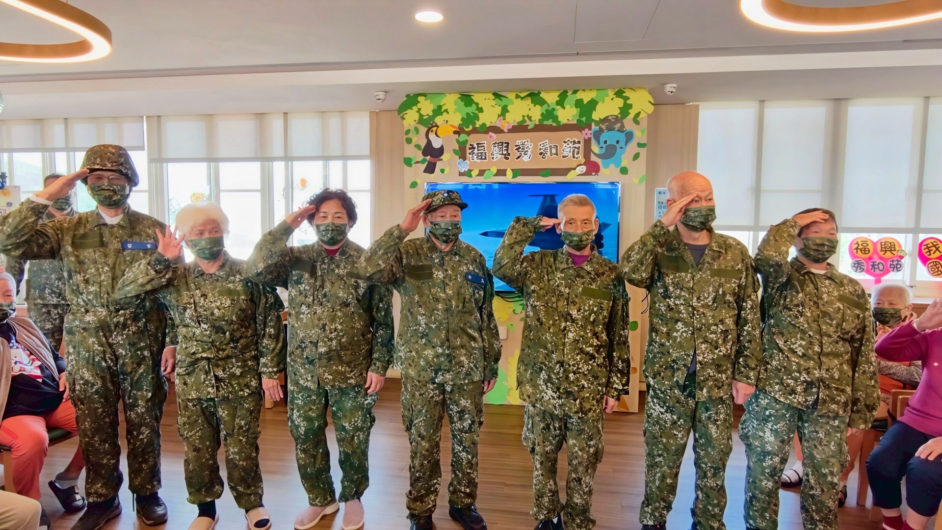 圖說:福興秀和苑日照中心邀彰縣後備政戰處及成功嶺步兵為90歲阿公圓夢重返運旅時光