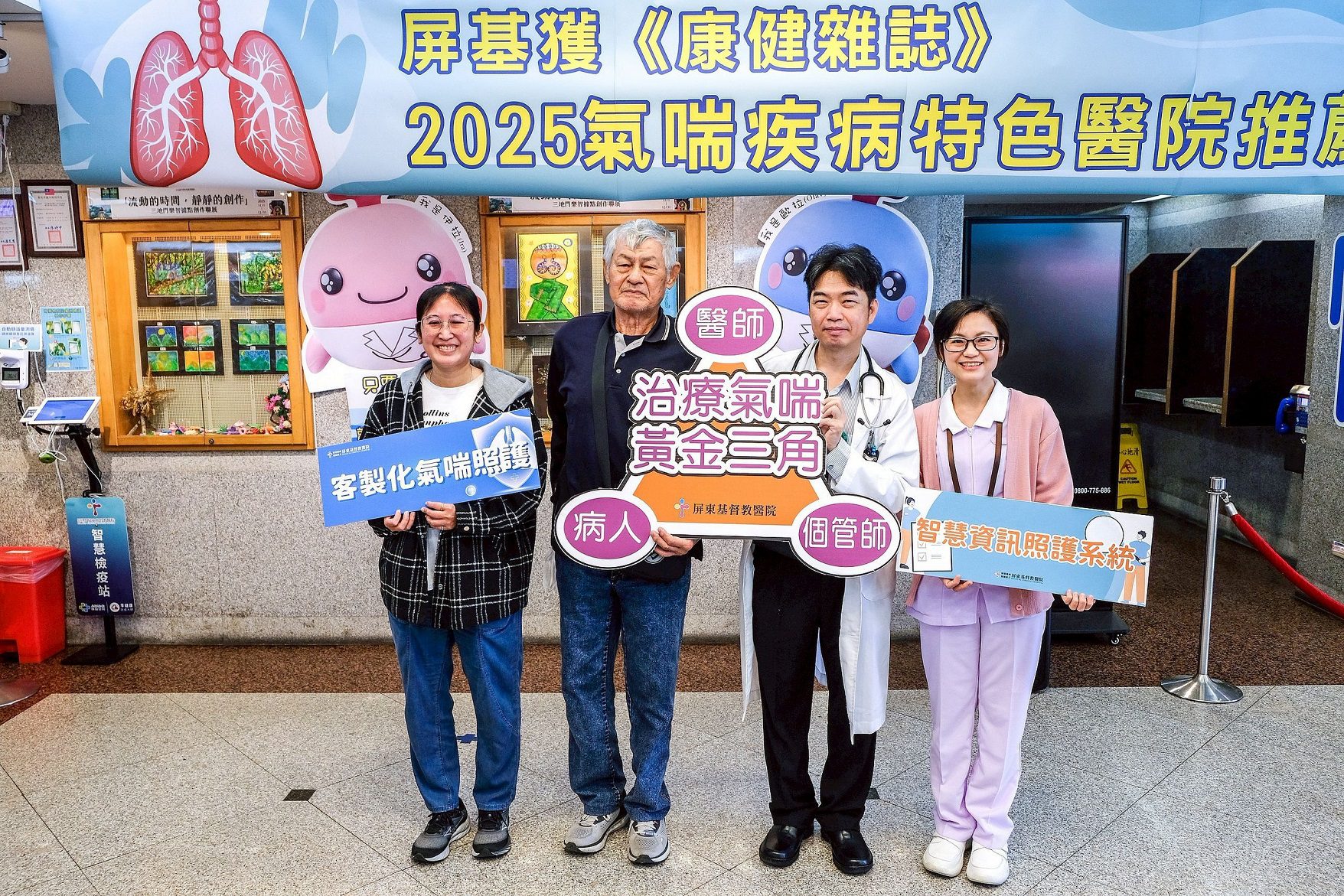 也因為看見太多被延誤的病情,屏基多年來將「氣喘與慢性阻塞性肺疾病(COPD)」視為呼吸照護的重點核心,從診斷、治療到追蹤,建立一套真正走進病人生活的照護模式。這份長期累積的努力,讓屏基獲得《康健雜誌》2025年「氣喘疾病特色醫院」推薦。