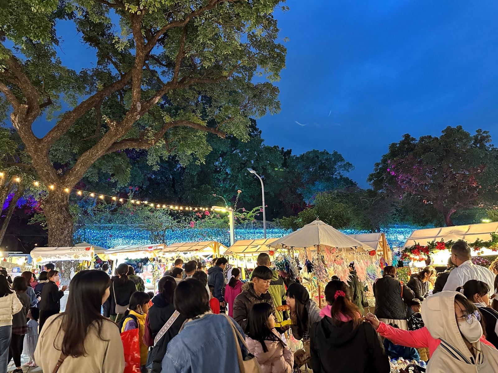 屏東縣政府傳播暨國際事務處表示,屏東聖誕節是南台灣最具代表性的歲末節慶,今年將百年屏東公園化身為聖誕村,14組夢幻燈飾結合藝術與城市魅力,深受民眾好評,將在1月4日畫下完美句點,配合周末推出壓軸活動「聖誕市集村」,集結特色美食、異國小吃及文創手作等超過70個攤位,邀請民眾邊逛市集,邊感受濃厚的節慶氛圍。