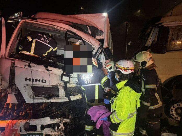 【Lai傳媒、記者爆料網/莫沛宇/新北報導】新北市瑞芳區台2線78.9K處,今(1)日凌晨0時許發生1起嚴重的對撞車禍。44歲郭姓男子駕駛營業大貨車,行經該處時疑因精神不濟,不慎駛入對向車道,正面對撞41歲李姓男子駕駛的貨櫃聯結車。由於撞擊力道猛烈,大貨車車頭瞬間凹陷變形,郭男一度受困車內,雙向交通也因此中斷逾2小時。