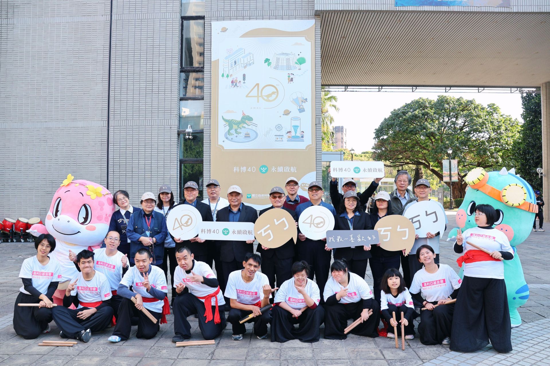 館慶活動於元旦上午熱鬧展開,先由瑪利亞青年表演工作坊帶來的大鼓演出揭開序幕展現活力,科博館的吉祥物「布比」還到臺中市政府參與升旗典禮,與民眾共迎新年,另一吉祥物「百合」則留在館內亮相與觀眾互動合影,吸引大小朋友駐足參與。科博館館長黃文山於上午九點親自迎接當日首批入館的觀眾,並致贈限量馬年紀念明信片,表達感謝與祝福。活動現場也公開四十週年紀念主題歌曲《時光的入口》,全曲結合生成式人工智慧(AI)創作完成,將科技應用融入文化製作,展現博物館跨域創新的實踐能力。
