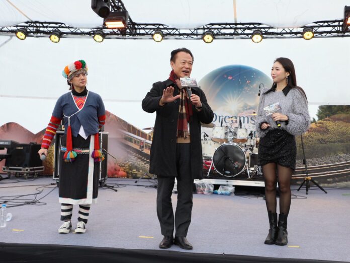 ▲「2026阿里山日出印象音樂會」於阿里山祝山觀日平台舉行,民眾搭乘森林鐵路迎接新年。(圖/嘉義縣政府提供)