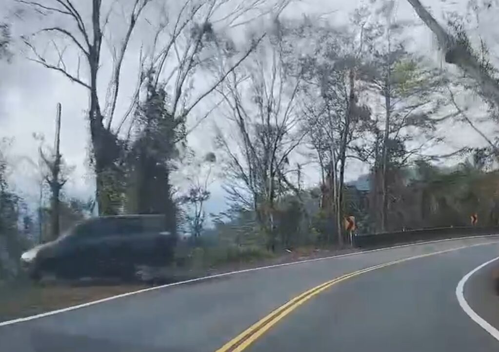 廂型車行經台14甲線15.6公里路段突失控衝落路邊山谷。翻攝畫面