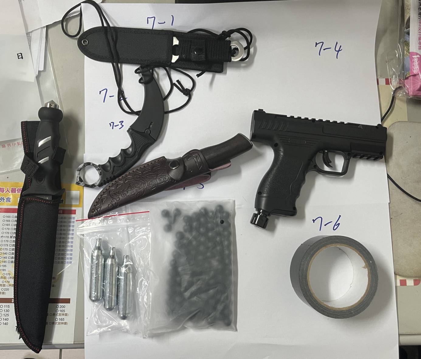 陳姓男子犯案用的槍彈及刀械。翻攝畫面