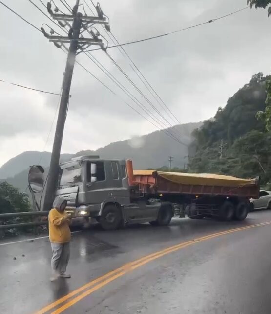 台九線北上114.2K砂石車撞電線桿。翻攝畫面