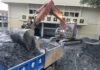 ▲知名歌仔戲演員陳亞蘭教長輩舞動水袖 台上右1為王彩樺 右2為牡丹心社區協會理事長陳專森。(圖/新北市社會局 提供)