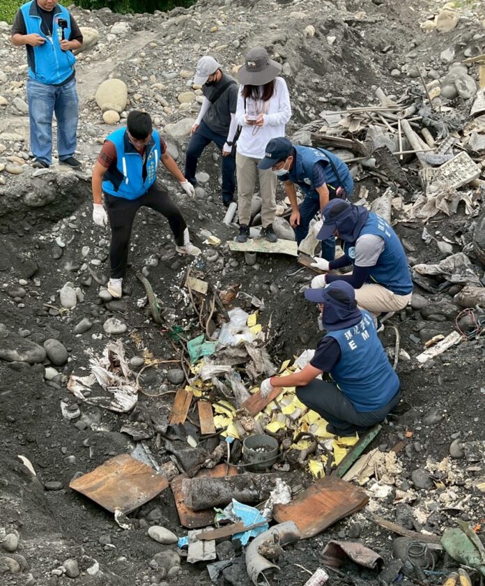 ▲經司法檢警及環保機關於香員腳段及和興段兩處地點查獲遭棄置廢棄物,嚴重影響河川環境。(圖/第四河川分署提供)