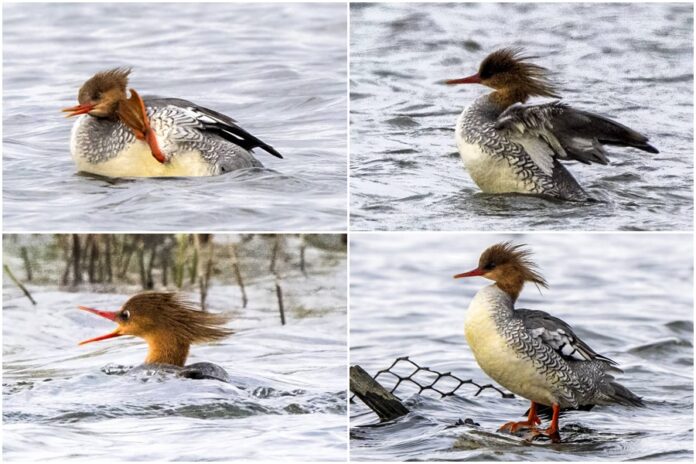 相較於其他野鳥,這隻唐秋沙顯得格外醒目,很快就被認了出來,消息不脛而走,鳥友們蜂擁而至,眾人對一鳥的盡情觀賞、拍攝,大飽眼福,過足鳥癮。