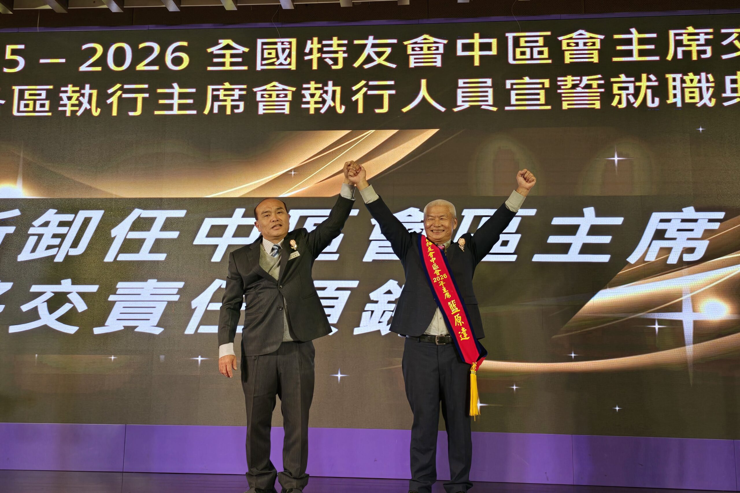 2026年國際青年商會全國特友會中區會主席交接典禮於昨(2)日舉行,國際青年商會中華民國總會、全國特友會及中區特友會及青商會員參與盛會。由全家福生活館總經理籃原達接任為國際青年商會中華民國總會全國特友會2026中區特友會會主席。