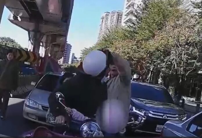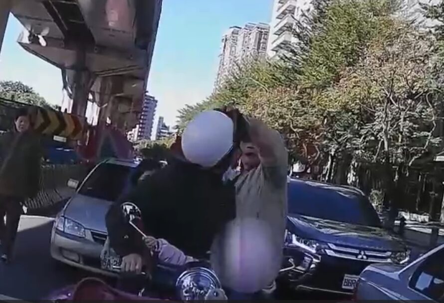 自小客車駕駛拍打機車騎士安全帽。翻攝畫面