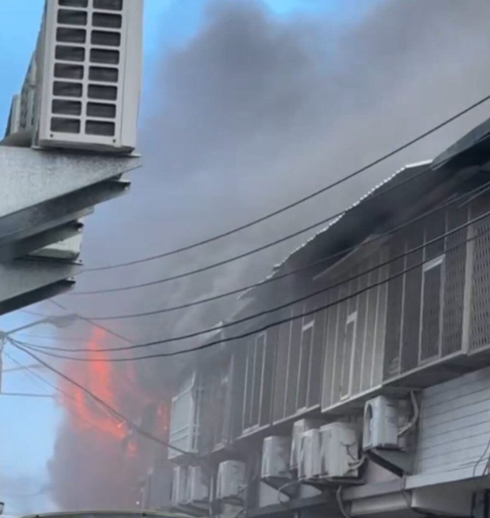 花蓮市重慶路火警現場火勢猛烈濃煙沖天。翻攝畫面