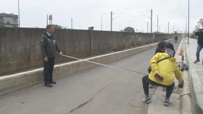 這條路是光埔二期的重劃範圍內的計畫道路,工程雖然還沒驗收,但居民赫然發現道路上有設計的瑕疵,為此,曾資程與地方里長還有大批居民,一起到馬路上會勘,希望把問題反映給市政府。