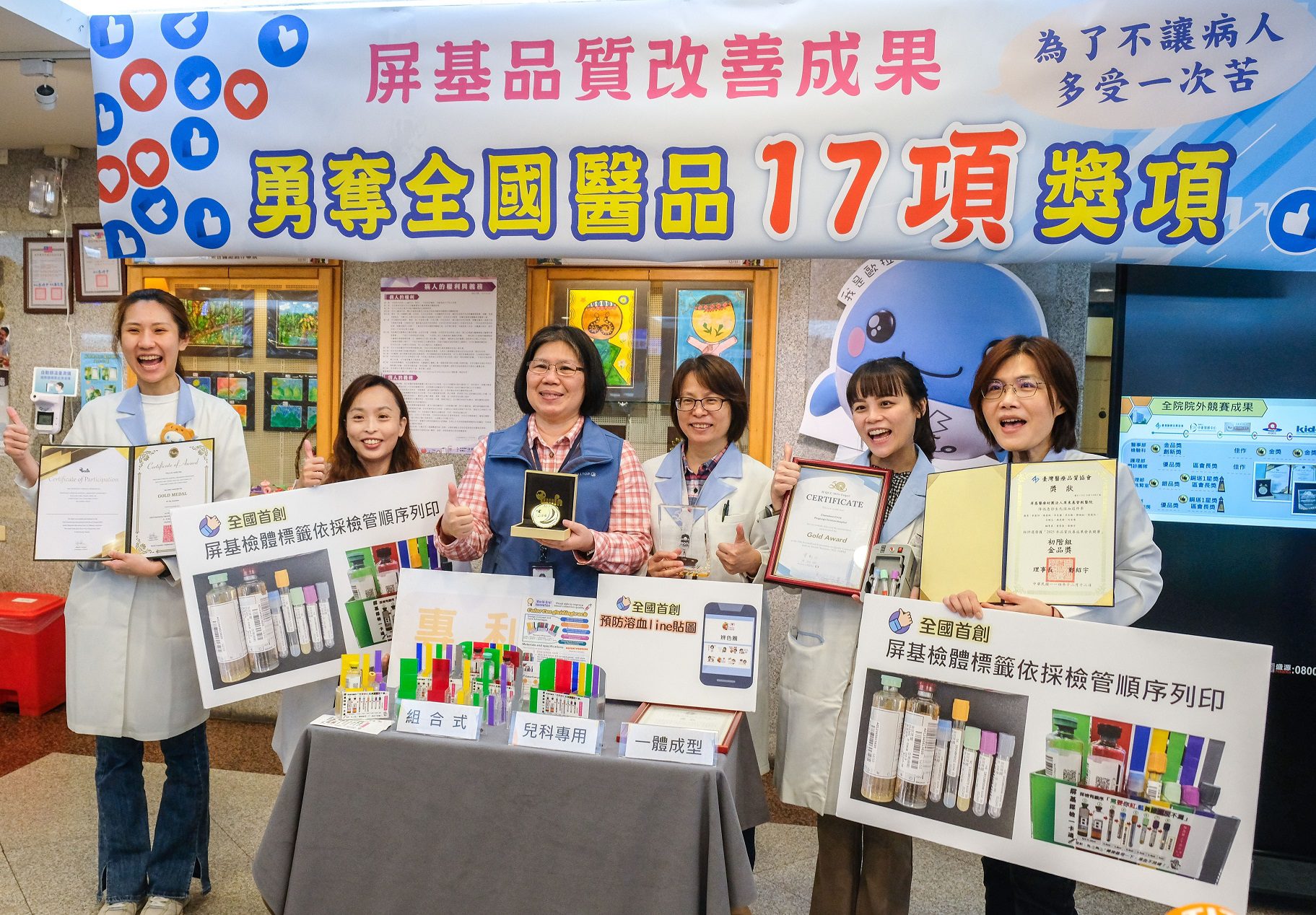 其中,「ColorCue導檢架」採用「一格一色」的視覺化設計,清楚引導正確採檢順序,有效降低急診高壓環境下的人為錯誤;而「e-mixer血液檢體混合器」則是床邊可攜式自動混合裝置,靈感來自手機充電概念,只需放置檢體即可完成均勻混合,大幅減少人工搖晃造成的品質變異。兩項創新成果皆已申請專利,不僅在台灣醫療品質協會2025年品質改善成果競賽中榮獲金品獎與創新獎,更勇奪2025年國際品管圈大會(ICQCC)金獎及高雄國際發明暨設計展金牌獎,讓屏基的品質改善成果站上國際舞台。