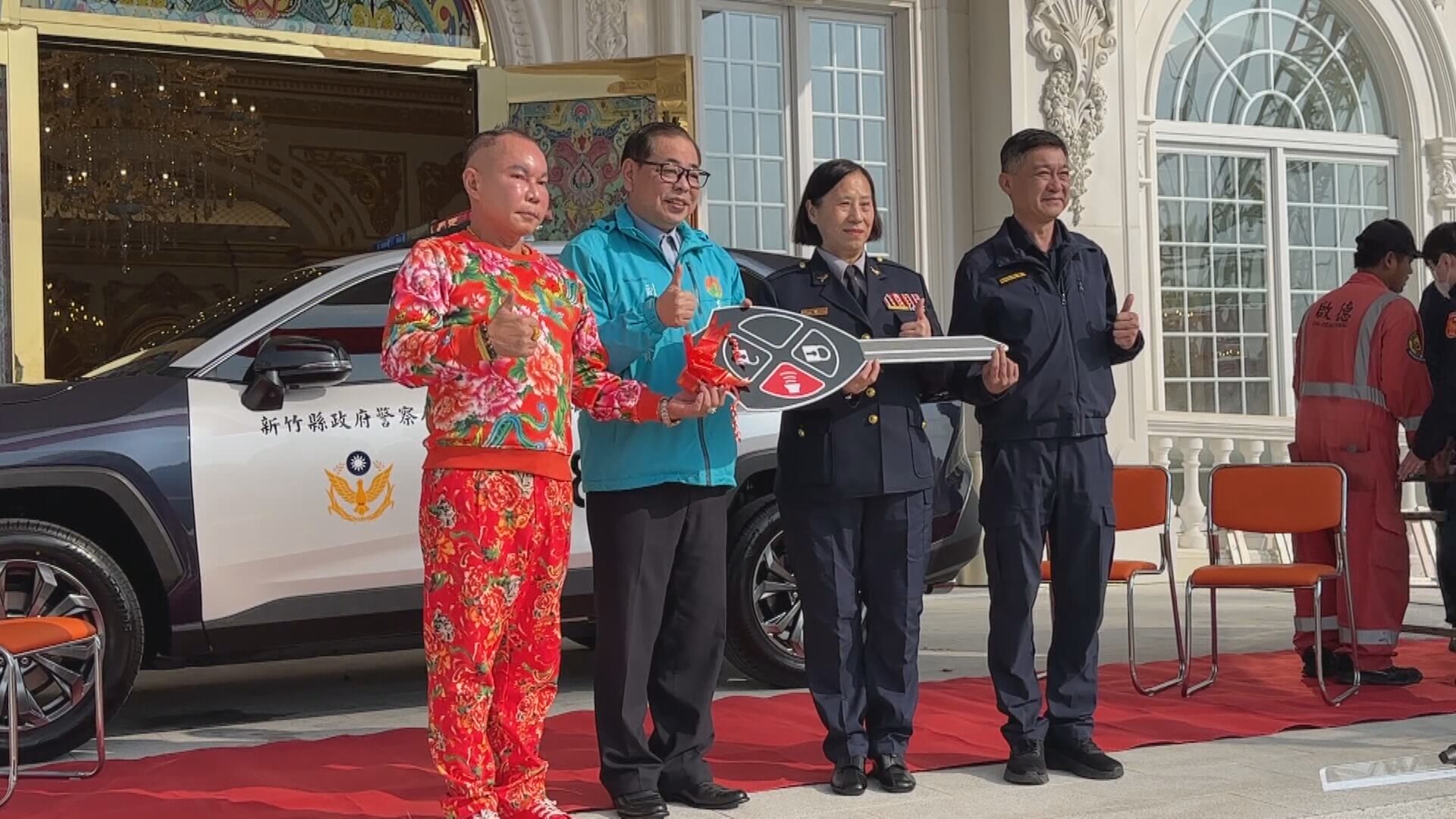再次從吊車大王胡漢龑手中接過鑰匙,為警方再添生力軍。這也是近期胡董事長捐贈花蓮警車後,再捐贈一部警車工竹東分局使用。