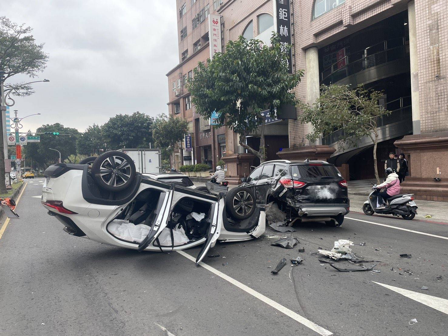 【Lai傳媒、記者爆料網/林千允/桃園報導】桃園市近日發生一起驚險連環車禍,一輛自小客車在行駛途中變換車道時,疑似未注意前方車流動態,直接撞上前方車輛,衝擊力道波及另外3輛自小客車,其中一輛甚至翻覆在路中,現場一度交通大亂,所幸事故並未造成人員受傷。