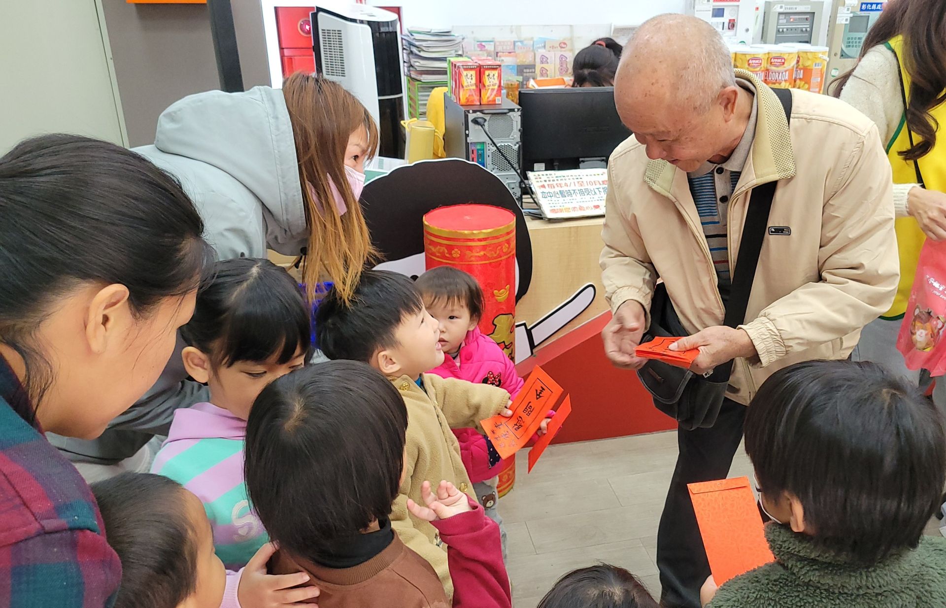 圖說:赤腳善人賴士田阿公帶了25萬元的紅包分送給家扶兒,盼好過年